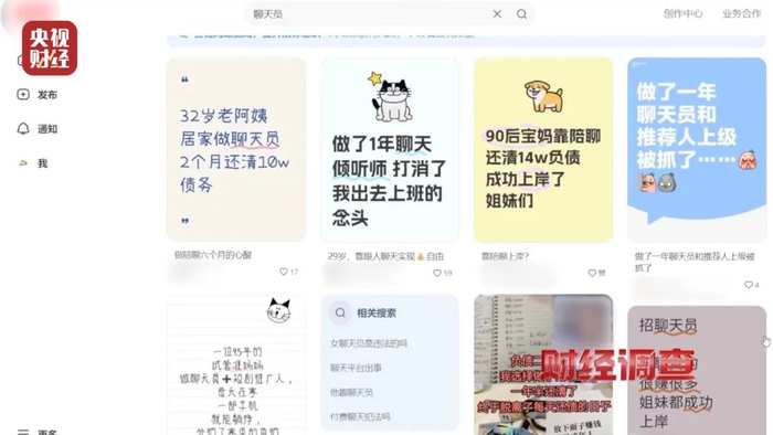 在网络上,有一些讲述“聊天员”励志故事的帖子,还清外债、月入3万、躺着赚钱……