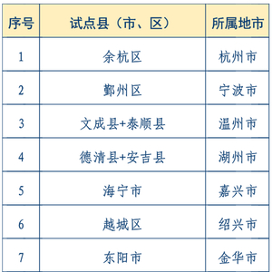 此次“先飞区”试点名单,包括杭州市余杭区、宁波市鄞州区、温州市文成县+泰顺县、湖州市德清县+安吉县、嘉兴市海宁市、绍兴市越城区、金华市东阳市、衢州市开化县、台州市椒江区+台州湾新区、丽水市青田县以及舟山市普陀区+岱山县+嵊泗县。