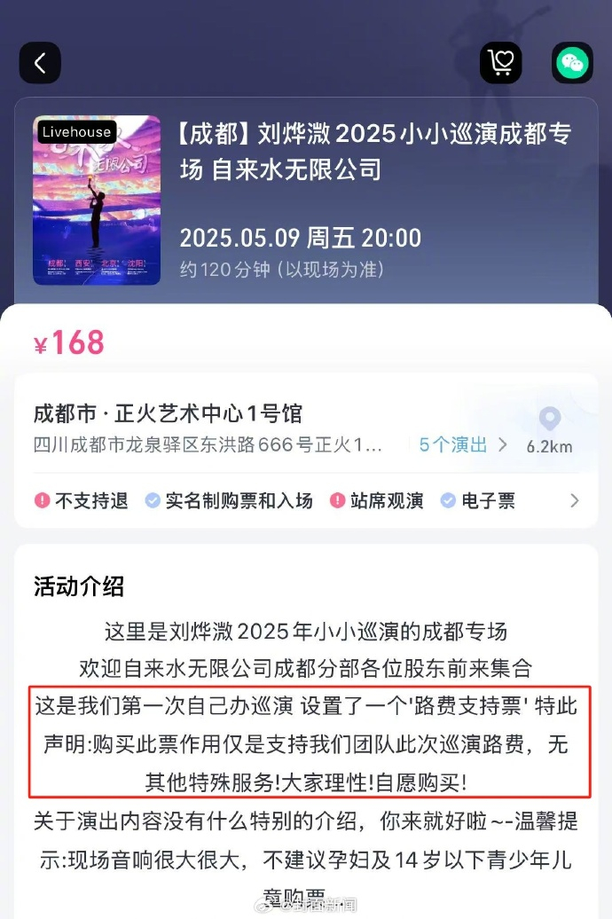 歌手巡演设1688元“路费支持票”?官方:字面意思,无特殊服务!网友:太抽象