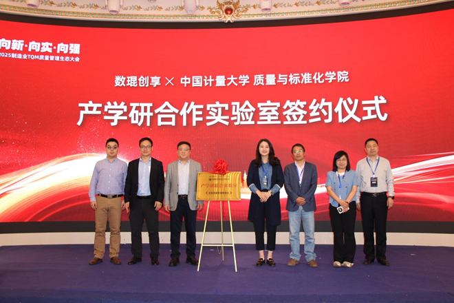 在大会现场,数琨创享与中国计量大学正式签署 “全面质量管理数智化联合实验室”合作协议。双方将围绕 AI 质检算法、质量大数据分析等前沿领域开展联合攻关,并通过 “企业导师 + 高校课程” 模式培养复合型人才,为行业输送质量管理领域的生力军。