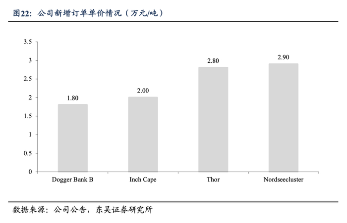 FOB到DAP,有利于海外业务拓展。公司交货从FOB(在装运港货物越过船舷完成交货)到DAP(目的地交货)模式,实现了服务升级,有利于重塑产业链价值分配。丹麦Thor风电场项目为实现首个公司自主运输的海外海工项目,其成功交付已验证该模式可行性。后续公司计划利用自有船队提供单桩产品的建造、海运、交付“一站式服务”,获得了与客户间更高的信任度和更加紧密的合作关系,这种深度绑定的服务模式有利于公司海外业务拓展。