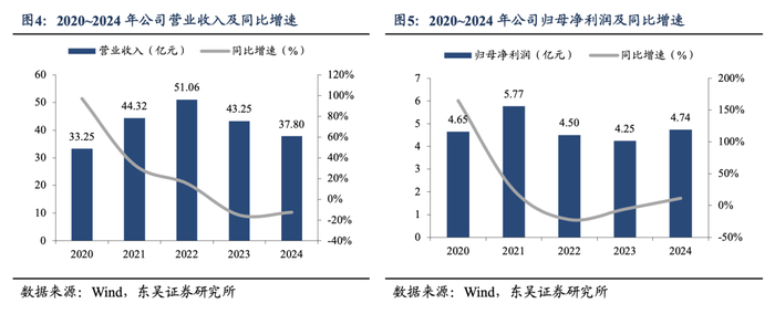 受益于国内风电行业抢装+加工费上涨,公司量利双升,20~21年实现归母净利润4.65、5.77亿元,而后国内海风规模不达预期、叠加陆风塔筒加工费下降,22、23年归母净利润分别为4.50、4.25亿元有所下降,国内表现较差,出口开始补充增量,24年实现归母净利4.74亿元,同比+11.5%。