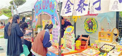 在“盘葫芦花”摊位前,结合当下流行元素设计的葫芦艺术品上绘制的卡通图案妙趣横生。来自青岛的刘海波是“盘葫芦花”工作室创始人,他说:“葫芦制作在北方很普遍,但我们的作品设计上更符合年轻人的审美,突出传统葫芦作品与时尚潮流的反差感。”第二次来津参加创意市集的他说:“天津是很特别的城市,既有深厚的文化底蕴又具有现代感。”
