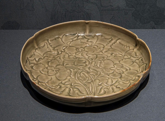 宋·青釉刻花牡丹纹盘,陕西省考古研究院藏