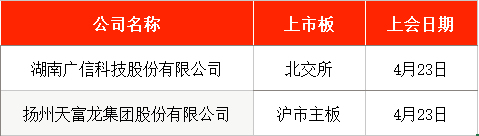 上海证券交易所上市审核委员会定于2025年4月23日召开2025年第15次上市审核委员会审议会议,审议扬州天富龙集团股份有限公司(下称“天富龙”)的首发事项。
