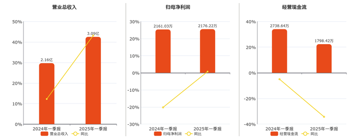 公司营业总收入为3.09亿元。归母净利润为2176.22万元。经营活动现金净流入为1798.42万元,较去年同报告期经营活动现金净流入减少940.23万元,同比较去年同期下降34.33%。