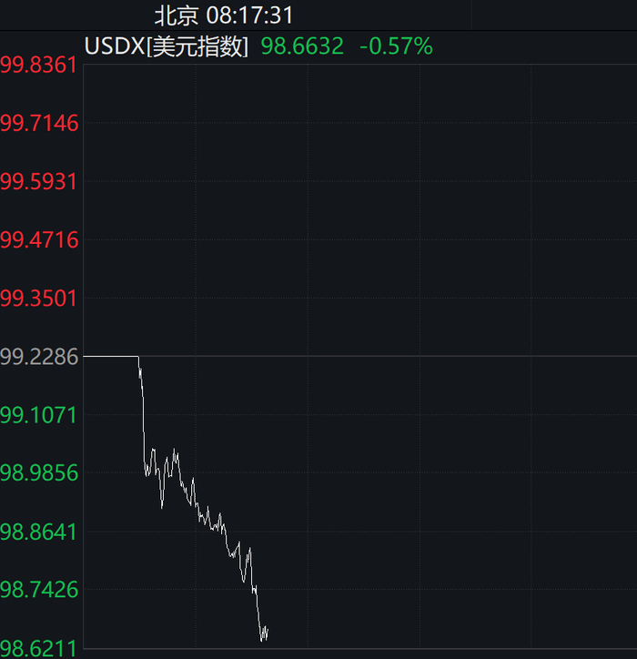 截至4月21日,COMEX黄金期货价格年内累计上涨27%。截至8:58,现货黄金涨幅扩大至1%,再创历史新高至3360美元/盎司。美元指数再度下挫,美元指数跌破99关口,是近三年来首次,现报98.74。