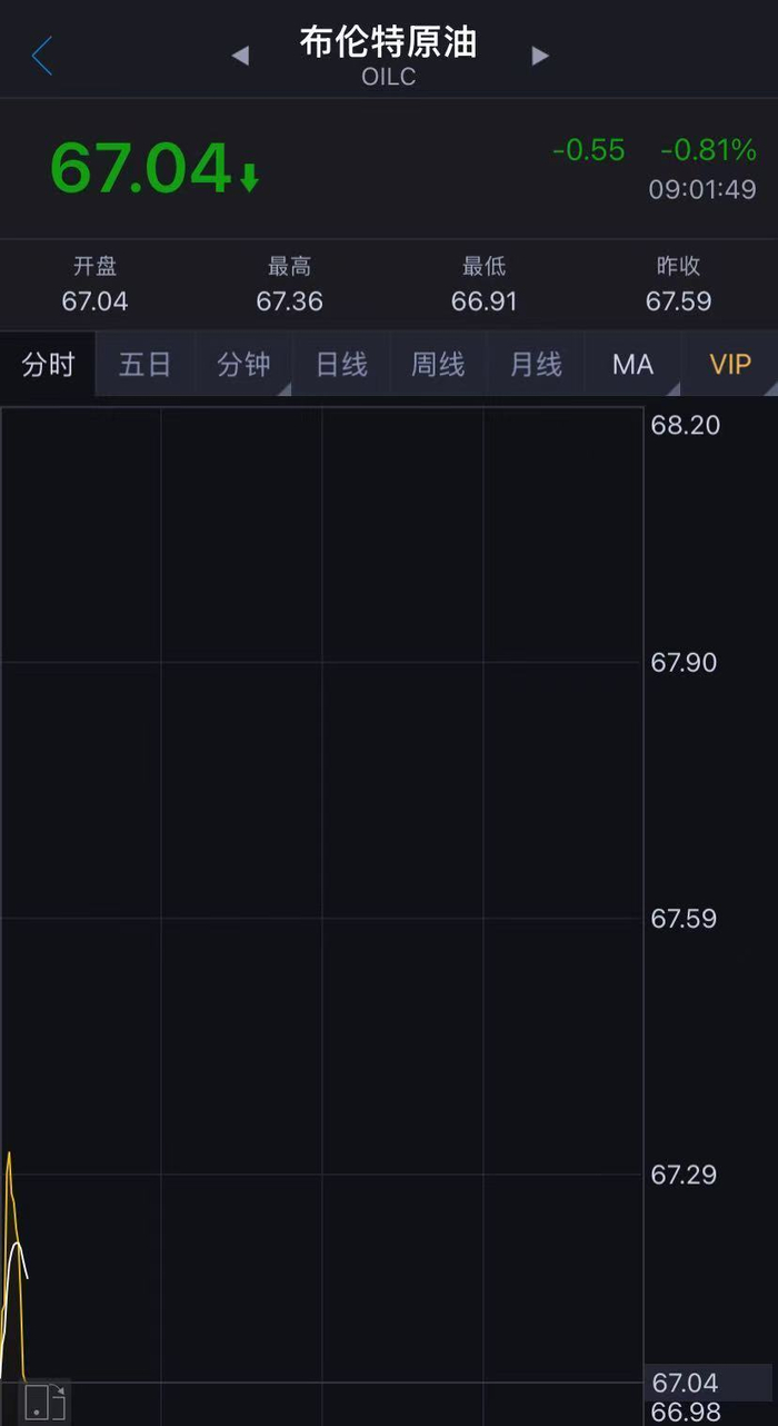 布伦特原油期货跌幅一度扩大至1%,现报67.04美元/桶,跌0.81%。