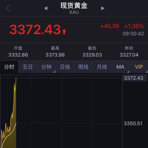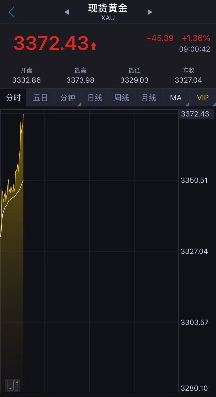 4月21日开盘后,现货黄金涨逾1%,再创历史新高至3373.98美元/盎司。