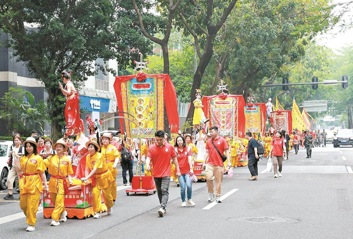 广州石牌村娘妈诞巡游点亮CBD
