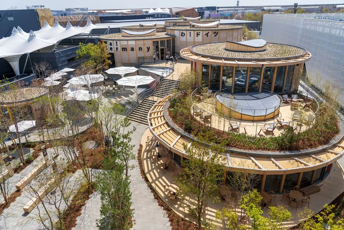 日本馆由日建公司操刀,采用循环的木结构设计,完美呼应了世博会的可持续发展理念。