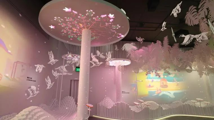 新加坡馆的设计强调互动与科技,AR技术让游客仿佛漫步在滨海湾花园。参观者可以欣赏到新加坡艺术家以“梦想、连接和未来”为主题的沉浸式艺术装置,通过纸艺和动画展示新加坡的城市与自然和谐共存,游客可以写下自己的梦想,这些文字将被投影在球形天花板上,营造出动态的沉浸式体验。