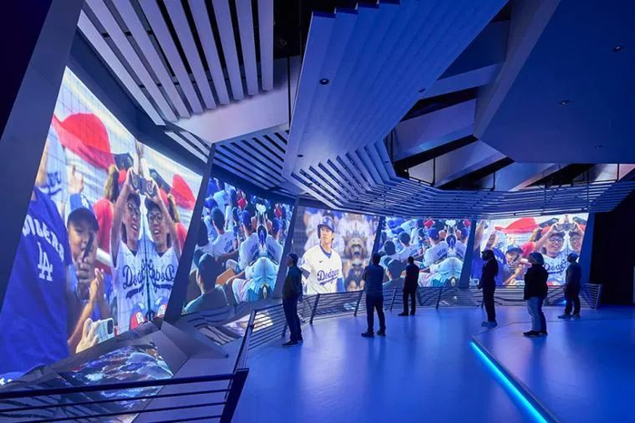 场馆外墙的动态投影,夜晚亮起时,宛如一幅流动的画卷,讲述着人与自然共生的故事。