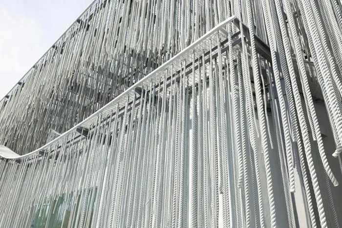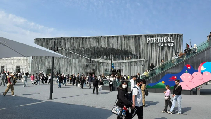 葡萄牙馆由日本建筑大师隈研吾设计,主题为“海洋,蓝色对话”,通过9000多根回收绳索打造出波浪般的建筑外观,象征海洋的流动。场馆内部展示葡萄牙的海洋探索历史和现代海洋保护成果,75%以上的材料可回收或二次使用,体现了可持续理念。展览空间还包括一个多功能厅,上演葡萄牙传统音乐和舞蹈表演。
