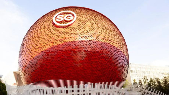 新加坡馆名为“梦想之球”,以“让梦想成真”为主题,外观是一个18米宽的红色球体,球体表面覆盖着约17000个回收的铝圆盘,致敬新加坡“红色小点”的昵称。