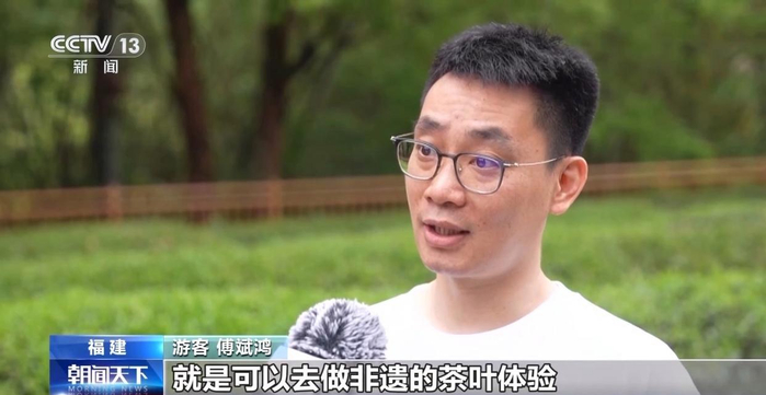 游客 傅斌鸿:武夷山的茶跟武夷山的旅游融合得特别棒,在这里有个很好的特色就是可以去做非遗的茶叶体验。
