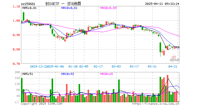 4月21日,创50ETF(159681)开盘跌0.24%,报0.815元。创50ETF(159681)重仓股方面,宁德时代开盘涨0.00%,东方财富跌0.88%,迈瑞医疗跌0.94%,汇川技术跌0.43%,中际旭创涨1.63%,阳光电源涨0.41%,新易盛涨2.25%,亿纬锂能跌0.18%,爱尔眼科跌0.23%,同花顺跌0.79%。