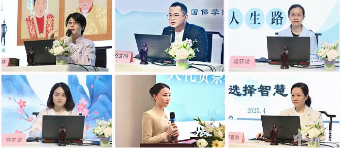 北京财贸职业学院讲师邢梦潺博士的报告主题为《〈群书治要〉中的人伦智慧》,以“各正其位、闲邪存诚”为核心诠说五伦之道,从圣贤经典中探寻成就幸福人生的密钥。澳大利亚悉尼大学硕士崔欣围绕为什么祭祀、什么是祭祀以及如何祭祀三部分,以《大礼贵祭祀,报恩得福祉》为题进行分享,引导大家深入理解祭祀为修身之基、入道之门。中国佛学院讲师谷文国博士从整合尊德性与道问学、即知识与修行两者的视角,从十重维度阐释“中和位育”的智慧之道,以便更好地使人因材而笃,契入传统文化穷理尽性、安身立命之道。中央党校(国家行政学院)博士罗嘉羽以《传统文化中的选择智慧》为题,从外择与内择两方面剖析选择智慧,指出外择的机遇与良缘皆基于内择的德行修养,人生的所有抉择归根到底就在于择念。剑桥大学博士、博士后聂菲璘以《论语·述而篇》的“志于道,据于德,依于仁,游于艺”一章为儒家之学的总纲,提出道是体、德是相、仁艺是用,由体达用,用不离体,是圆满成就圣贤的人生路径。