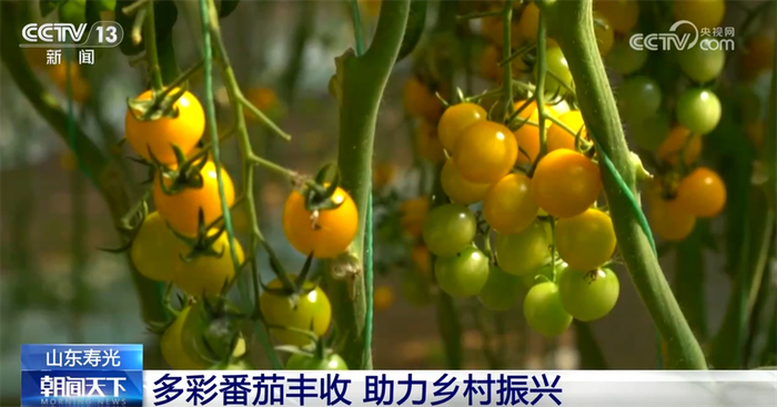山东寿光古城街道种植的两万多亩番茄迎来丰收。大棚内,一串串红、黄、绿等各色番茄挂满枝头,果农们正在忙着采摘。古城街道经过十几年的摸索,目前当地已经形成了完整的产业链,也吸引了众多在外务工的青年人纷纷返乡,加入到番茄种植产业中来。