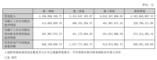 分季度主要会计数据