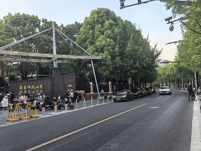 4月16日下午,记者又来到长宁区天中路上蹲守。华师大附属天山学校校门口北侧的天中路,是接孩子的车辆临停的主要区域,共涉及10个道路智慧停车位。下午5时30分,已是智慧停车位开始收费的时段,但记者看到来接孩子的家长们仍径直将车辆停进车位,天中路上并未出现类似于东环龙路上的乱象。原因何在?多名家长向记者透露,据称是学校出面进行了沟通后,天山学校校门口北侧天中路上的10个道路智慧停车位收费时间延后至了下午6时以后,也有家长称是6时30分以后,总之是避开了接孩子的时间段。