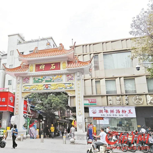 近两年,村内的潘祠片区也进行了试点改造,据了解,吸引了第三方企业投入2800多万元建设新型公共文化空间。羊城晚报全媒体记者看到,在石牌西路与海欣街交界处,石牌村一座全新的低层商业体正在装修,从楼体上面的宣传标语可见这里将被打造成“文艺+商业”的新型文旅业态,商业体旁边的石牌牌坊也经过全新改造,雄伟大气。从该牌坊进入到潘祠广场一带,道路已重新铺设,祠堂内村民打球打牌,其乐融融。