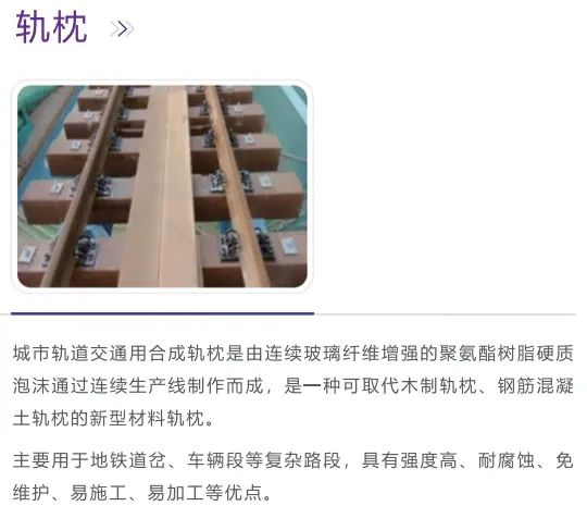 合成轨枕主要用于地铁道岔、车辆段等复杂路段和特殊部位具有强度高、耐腐蚀、免维护、易施工、易加工等优点。