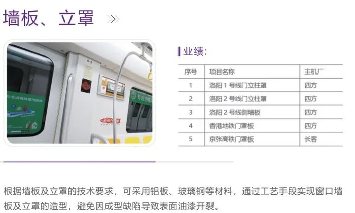 酚醛树脂基复合材料疏散平台及扶手,具有重量轻、易加工、安装方便、耐腐蚀、长寿命等优点,已经广泛运用在了广州、上海、北京等地铁项目中。