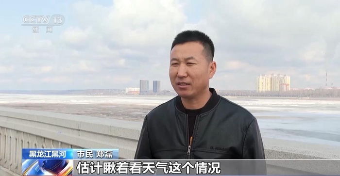 市民 郑磊:我是黑河本地的,没啥事我就上江边来溜达溜达,看天气情况,雨水这么多,应该很快就能“跑冰排”。