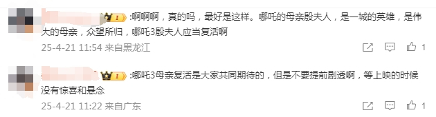 消息一出,网友讨论得热火朝天,有期待早日上映的,有呼唤殷夫人、陈塘关百姓一起复活的,有要求不要剧透的,还有调侃“《哪吒3》以复活哪吒的妈妈殷夫人为主线,电影名就叫‘你好,李唤殷’”……