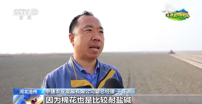 中捷农业发展有限公司副总经理 于连进:因为棉花也是比较耐盐碱,抗涝、抗旱,我们今年首次引种棉花秸秆还田。棉花秸秆有机质含量比较高,如果通过3到5年时间,对我们盐碱地的有机质提升有非常大的作用。