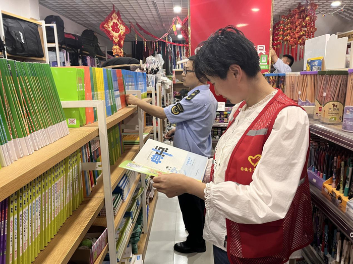 三、靶向整治清源头,织密监管“防护网”。镇新时代文明实践所联合镇市场所等部门成立工作督查组,对学校周边的书店、文具店等场所进行了全覆盖排查,共检查8家出版物经营店铺,重点检查了各类书籍、报刊以及音像制品是否存在涉黄、涉赌、涉暴等非法有害内容,以及是否存在盗版侵权出版物的情况。在检查过程中,志愿者还积极向经营者普及“扫黄打非”相关法律法规,提高经营者“护苗”意识,确保文化市场规范有序。