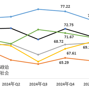 从六大领域来看,经济领域74.90,政治领域64.58,文化领域69.14,社会领域69.49,生态领域70.73,党建领域70.53。文化、社会领域的改革热度环比、同比均上升,党建领域的改革热度也同比呈现上升趋势。