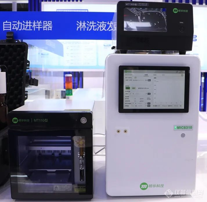 MIC6110型自动进样器(左下)是专门针对离子色谱仪样品进样特点研制的一款进样器。该设备一机多用,可满足单、双通道离子色谱仪的样品进样,且自主设计的进样针、进样系统,可最大限度避免交叉污染,操作简单,更贴合环境监测领域应用情况。