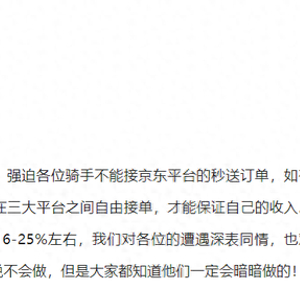 不管别人说什么阴谋论,反正我喜欢京东这样的公司,相信外卖骑手,商家和大多数消费者也一样。