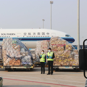 图为广州白云机场海关关员对进出口货物进行机边监管。唐希贤摄