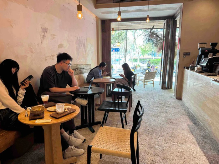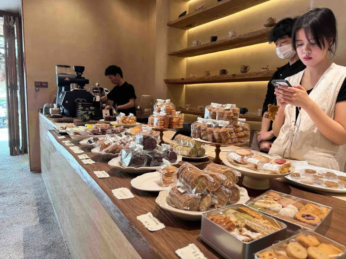 早在2015年将网红烘焙“蛋糕爆炸”从四眼碶迁店到镇明路后,2024年,主理人李童又在镇明路和广济街路口择了一处街角位置,新开了一家侘寂风格的“无物咖啡”。李童回忆称,自这家店开业起就经常处于客满状态。一年下来,除了经常有闻名而来的打卡人群,还有十分稳定的一群“铁杆粉”。