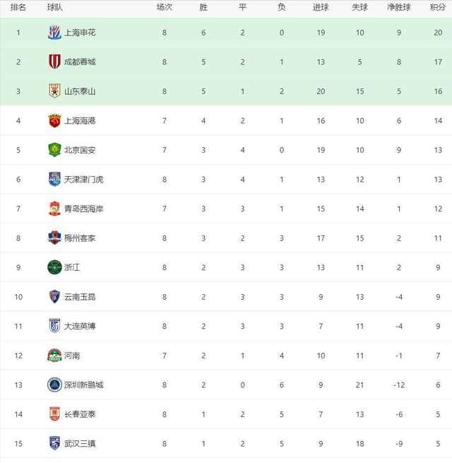 随着蓉城3-1送海港首败,河南3-1,浙江0-2,中超最新积分榜出炉