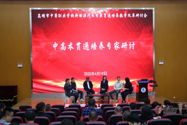 当天,昆明市教科院还组织了新能源汽车技术贯通培养教学改革研讨会,南京工业职业技术大学教授丁继斌分享“汽车职教本科专业建设改革与实践”,北京百通科信机械设备有限公司总工程师邸玉峰分享“数智赋能重构职教贯通新生态”。来自本科、职教本科、高职、中职、企业的教指委多位专家就中高本贯通培养展开研讨,为“中-高-本”贯通培养提出积极思路。