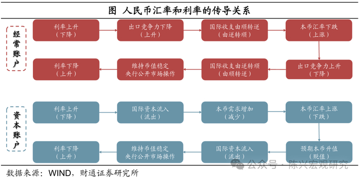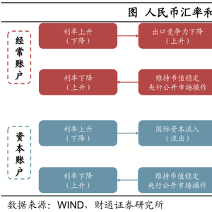 汇率和利率通过资本和经常账户互相影响。汇率与利率之间的相互影响关系是复杂而重要的动态过程,通过经常账户和资本账户两个渠道相互作用。经常账户方面,汇率的变动带来产品相对价格的变化,从而影响国际收支并影响利率;资本账户方面,汇率变化直接影响投资者对汇率的预期,从而影响国际资本的流向最终影响利率。在这个过程中,央行为了维持币值稳定,会采取一系列政策措施,对利率产生影响。