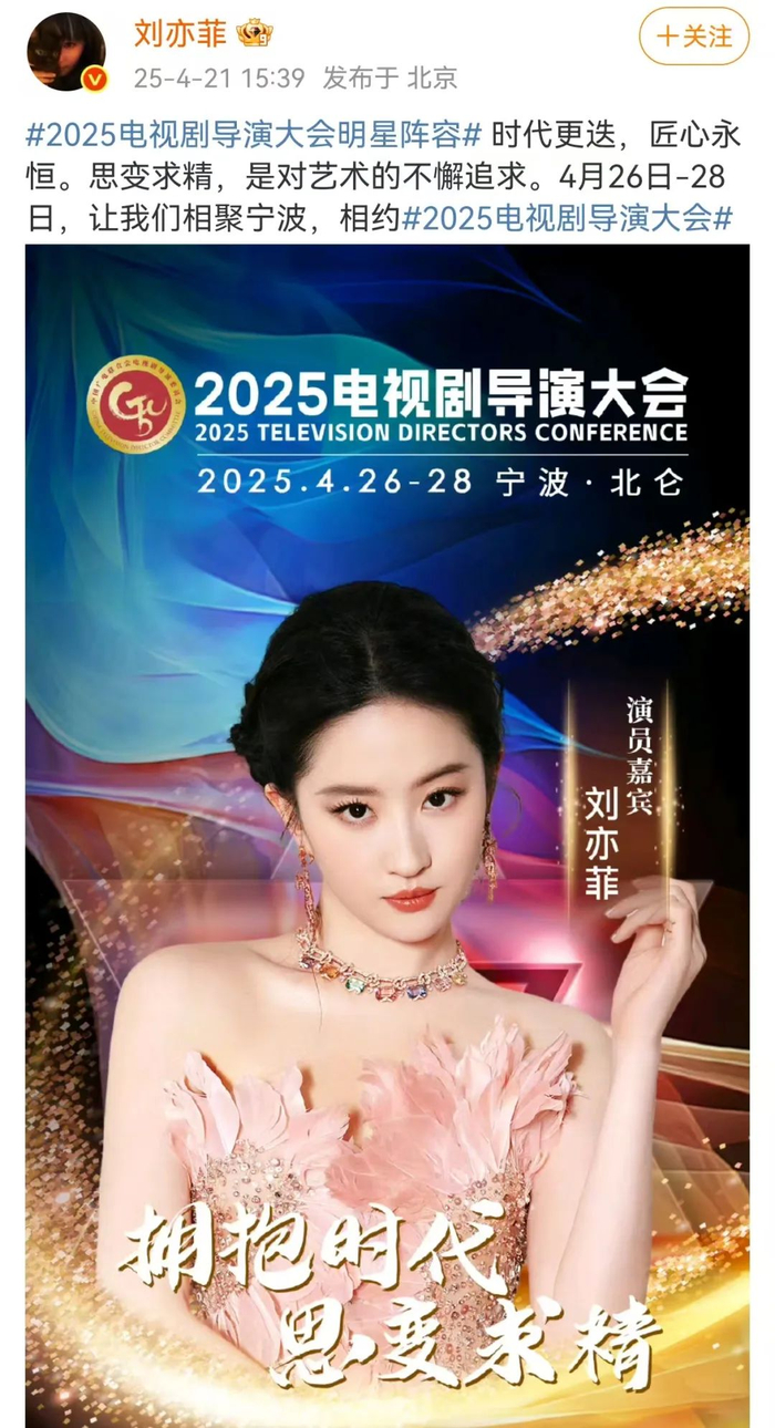 刚刚,演员“刘亦菲确认出席电视剧导演大会”的消息,冲上文娱榜热搜。