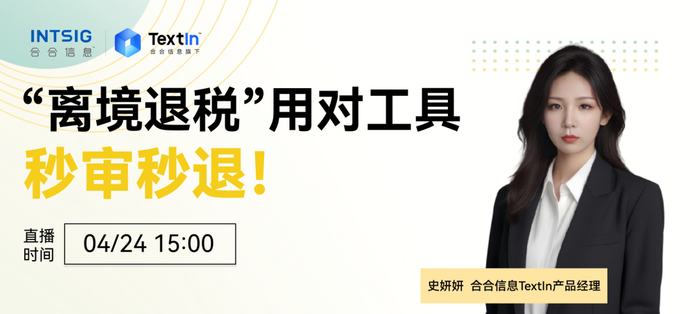为了帮助商场、海关和金融机构应对这些挑战,合合信息TextIn产品经理史妍妍将于4月24日15:00进行一场主题为《“离境退税”用对工具,妙审秒退!》的直播活动。在这场直播中,主要帮助解决以下三大问题: