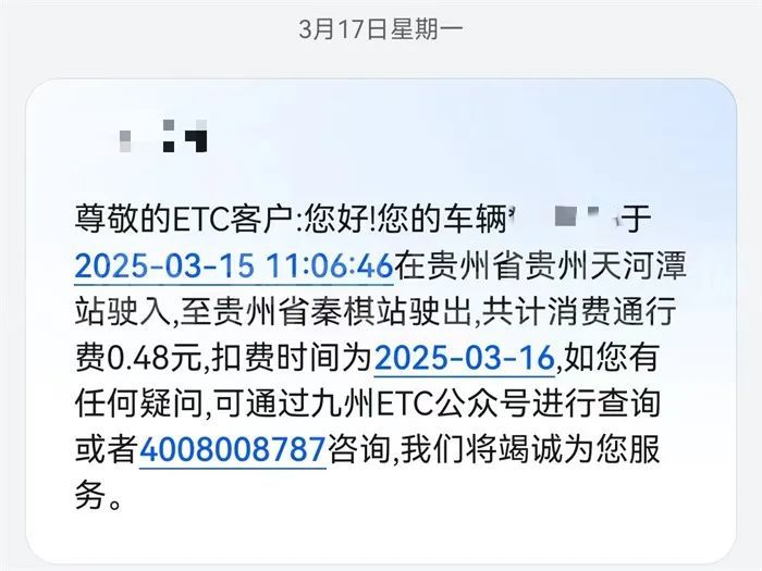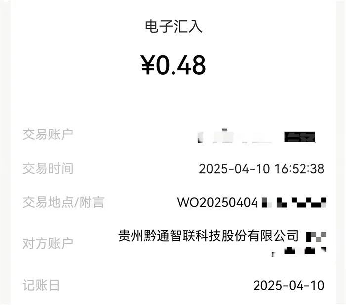 “这一路段是免费路段,按理说是不会收取通行费的,但是我确实被扣了费。我多次电话询问后,才被告知是因为系统升级导致的,款项在我主动登记信息后退回,时间较长。”邬先生告诉记者,直到4月10日,他收到来自贵州黔通智联科技股份有限公司的退款。