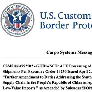任何通过任何运输方式将来自中国大陆或中国香港的国际邮政物品运往美国的承运人,都必须持有国际承运人保证金,以确保支付经修订的第 14256 号行政命令中所述的关税。关于通过国际邮件入境的货物运输的其他指导,将在单独的 CSMS 消息中发布。