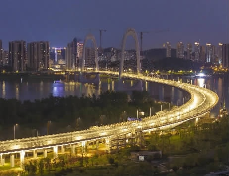 4月21日晚,长沙兴联路大桥桥面路灯全部开启,进入灯光调试阶段。该项目是长沙在建桥面最宽、单跨最大、桥长最长的过江大桥。项目建成后将成为益阳、常德等城市连通省会长沙的重要通道之一。