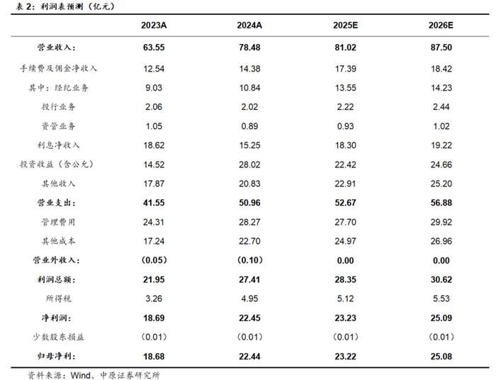 投资建议:报告期内公司在稳固“基本盘”的同时,抓住机遇扩大“增量盘”,打造与客户的“利益共同体”,代理股基交易量及代理买卖证券业务净收入同比实现明显增长,代销金融产品业务逆市增长;两融业务客户渗透率位居行业前列,市占率创近5年新高,凸显服务广度与深度;固收自营以及衍生品、其他金融资产投资均取得较好业绩,投资收益(含公允价值变动)同比高增驱动公司整体经营业绩再创佳绩。预计公司2025年、2026年EPS分别为0.53元、0.57元,BVPS分别为8.85元、9.22元,按4月18日收盘价7.40元计算,对应P/B分别为0.84倍、0.80倍,维持“增持”的投资评级。