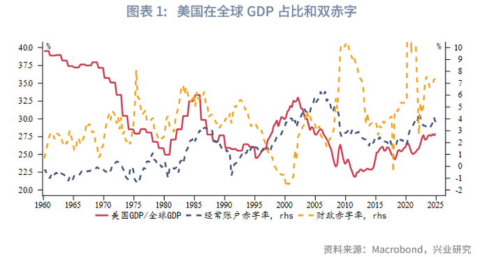 在米兰看来,美国为“自由经济体”承担了全球防务的义务,作为回报美元获得了储备资产地位,美元是联系两者的纽带。然而,1960年代以来美国经济相对实力下降,在全球GDP占比由近40%降至目前28%(最低22%);同时美国的经常账户逆差和财政赤字(政府债务)水平却在持续扩大。由此带来的产业空心化使得美国提供防务变得更加困难。米兰认为,美国承担了国际义务,但并未从中享受到足够的好处,反而出现了弊端,例如美元阶段性高估,没有享受持续性的低借贷利率等。因此米兰认为需要重塑贸易体系。