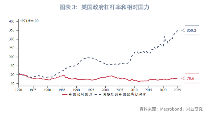 美元失衡的核心矛盾是美国债务规模持续扩张,需要的融资量越来越大,然而美国相对经济实力下降,导致能够提供的总量需求(净进口或经常账户逆差)越发不足。制造业回流美国将进一步削减美国进口需求。因此度量美元失衡的逻辑便是体现美国政府杠杆率和美国相对经济实力之比。定义美国政府杠杆率为“美国国债总量/美国名义GDP”;定义美国相对国力为“美国GDP/全球GDP”。由于美债市场长期存在大量价格弹性较低的需求,例如海外官方投资者和美联储。在衡量美国政府杠杆率时需要剔除这一部分需求获得“剔除低弹性需求后的美国杠杆率”,以更好地反映负债压力。以1971年“尼克松冲击”为标志,全球贸易体系开始迈向信用货币时代,至1978年“牙买加协定”生效正式进入信用货币。我们以1971年为基期,将调整后的美国政府杠杆率和均重新定基为100。较“布雷顿森林体系”崩溃时,美国的相对国力下降,而杠杆率却大幅提高,美元体系的失衡显而易见。进一步,以调整后的美国政府杠杆率除以美国相对国力,以反映杠杆率和相对国力的此消彼长关系,并定义其为“美元失衡指数”。尽管该指数显示美元失衡情况愈演愈烈,但为何美元指数迟迟没有崩溃呢?