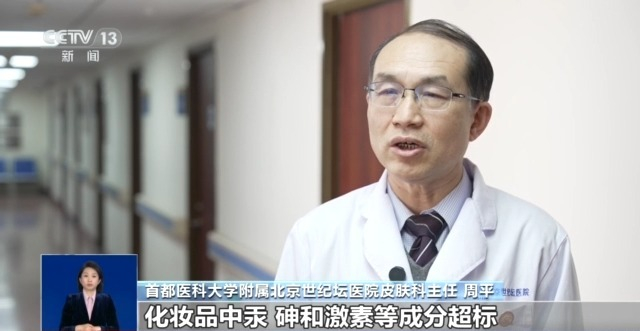 首都医科大学附属北京世纪坛医院皮肤科主任 周平:化妆品中汞、砷和激素等成分超标会对人体健康造成严重危害。长期使用含汞化妆品可能导致皮肤色素沉着、皮肤变薄、出现红血丝,甚至引发过敏性皮炎。长期接触砷会引起慢性中毒,表现为皮肤角化、色素异常,严重时可诱发皮肤癌。这些成分协同作用,加剧毒性,例如添加激素掩盖皮肤问题如过敏,而汞、砷继续造成隐形伤害。此类问题常见于非法添加的“三无”产品,务必提高警惕。