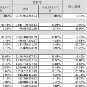 具体到收入构成来看,无论是主业酒类,还是分产品,或是分地区,华致酒行近乎都清一色下滑。